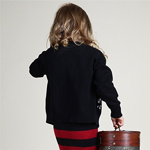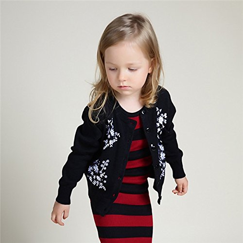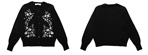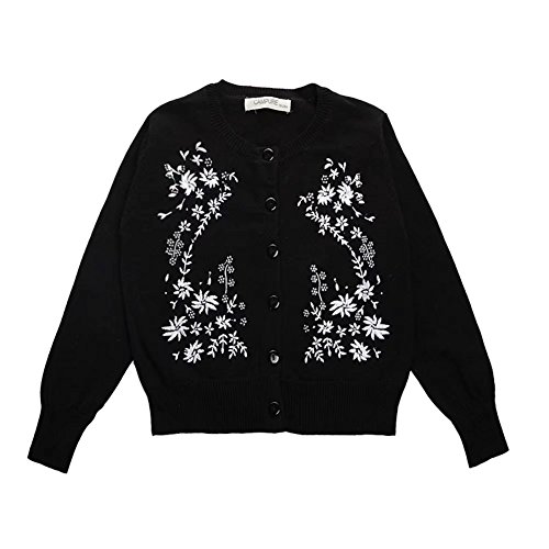 Kayiyasu カイヤス キッズ カーディガン 子ども セーター ニット カットソー スウェット トレーナー 前開き 花柄 刺繍 021-xcfz-15033(3Y(100cm) ブラック )