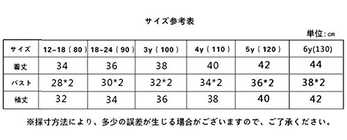 - サイズ: 12-18(80cm) 18-24(90cm) 3Y(100cm) 4Y(110cm) 5Y(120cm) 6Y(130cm)