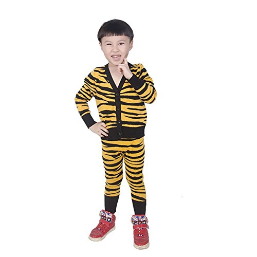 Kayiyasu カイヤス キッズ カーディガン 子ども セーター パンツ ニット カットソー スウェット トレーナー ズボン 前開き 上下セット 虎柄 豹柄 021-xcfz-hptz(18-24(90cm) イエロー )