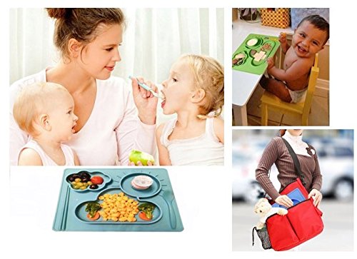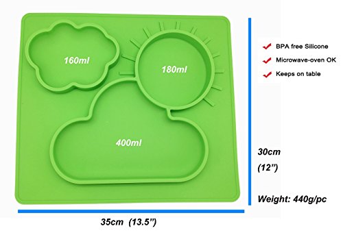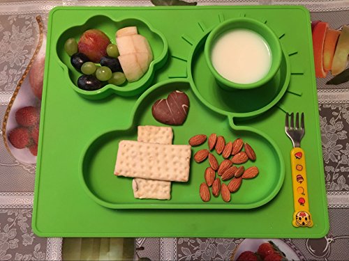 シリコン製 お食事用ミニマット 赤ちゃん 幼児適用 BPAフリー FDA食品級 滑り止めランチョンマット 丸洗い, ベビーベッド付き(緑)