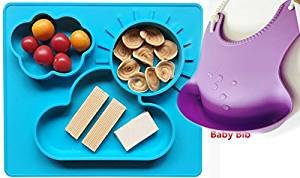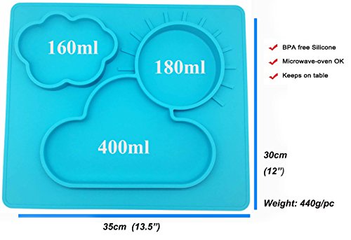 シリコン製 お食事用ミニマット 赤ちゃん 幼児適用 BPAフリー FDA食品級 滑り止めランチョンマット 丸洗い, ベビーベッド付き (青)