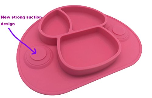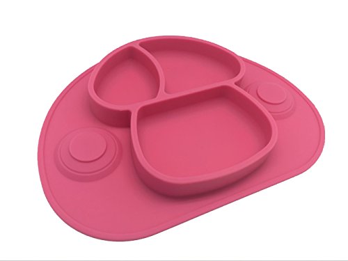 強い吸引シリコン製 お食事用ミニマット 赤ちゃん 幼児適用 BPAフリー FDA食品級 滑り止めランチョンマット 丸洗い, ベビーベッド付き (ピンク)