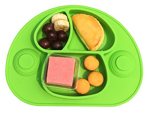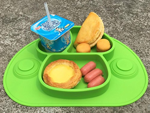 強い吸引シリコン製 お食事用ミニマット 赤ちゃん 幼児適用 BPAフリー FDA食品級 滑り止めランチョンマット 丸洗い, ベビーベッド付き (グリーン)