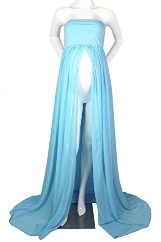 マタニティフロント分割シアーシフォンマタニティガウンマキシブライズメイドドレス写真撮影 US サイズ: Free Size カラー: ブルー