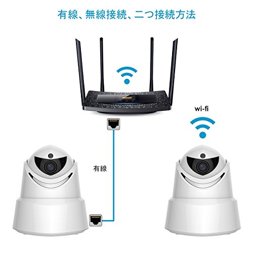 - 接続安定:有線LANまたは無線ラインでカメラと接続可能ですので、カメラは気軽にインターネットと接続できます。LED赤外線ライト搭載で夜間もしっかり映像確認でき、web カメラ・防犯カメラとしての場合に、泥棒の顔だけでなく声も聞こえます。