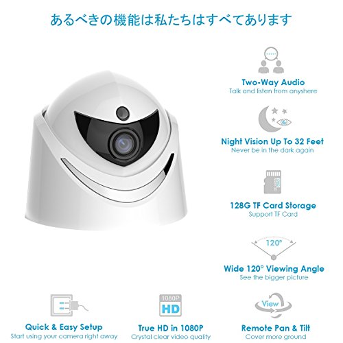 - 多機能:カメラレンズが水平で340度垂直で90度回転でき、録画情報をパソコン、iPhone和androidなどでご確認可能です。双方向音声、動体検知、ナイトビジョン、アラーム警報、多ユーザー同時に使用可能です。ベビーモニターとしての場合に、赤ちゃんの移動が検知すると、自動的に録画し、携帯へ通知します。