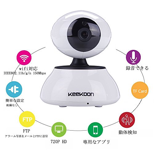 Keekoon ネットワークカメラ IP WEB WIFIカメラ 100万画素 防犯監視カメラ 暗視撮影 マイク内蔵 ペット ベビーモニター CK-01