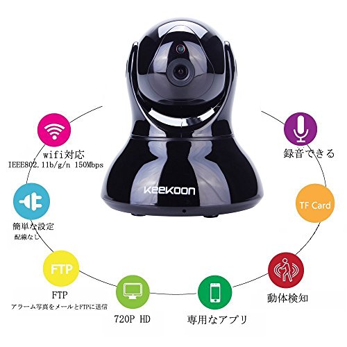 Keekoon ネットワークカメラ IP WEB WIFIカメラ 100万画素 防犯監視カメラ 暗視撮影 マイク内蔵 ペット ベビーモニター CK-02