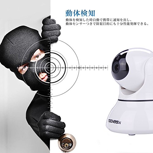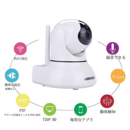 Keekoon ネットワークカメラ 720P IP Web WiFiカメラ ワイヤレススカメラ スマホ/タブレット/パソコン対応 100万画素防犯監視カメラ 赤外線暗視撮影 マイク内蔵 ベビーモニター (ホワイト)