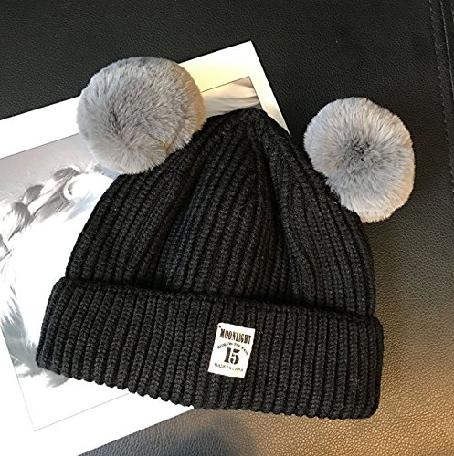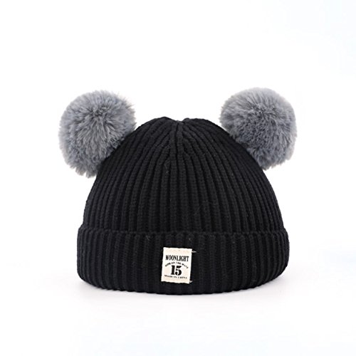 Keepjoy ニット帽 ベビー 子供 ベビー キッズ 赤ちゃん ベビー ニットキャップ 柔らかい 暖かい かわいい 防風 防寒 保温 (ブラック)