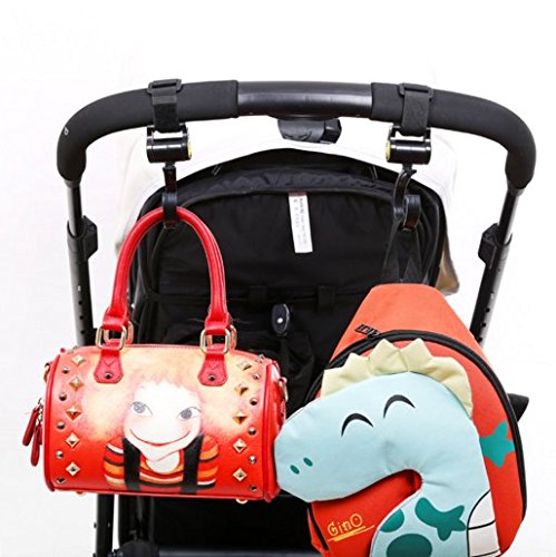 Keepjoy ベビーカー フック 荷物フック 2個セット 360度回転 マジックテープ式 自転車のハンドルやスーツケースにも使える おすすめマルチフック ブラック