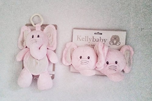 (ケリーベビートイバンドル3 pc。)PlushピンクElephant with RattleクリップオンPram Toy and 2 pc。ベビーシートベルトカバーピンク象