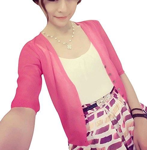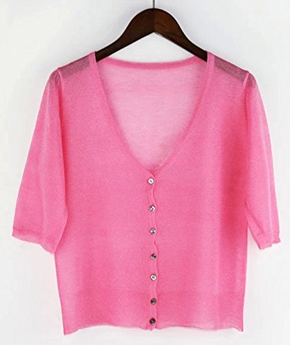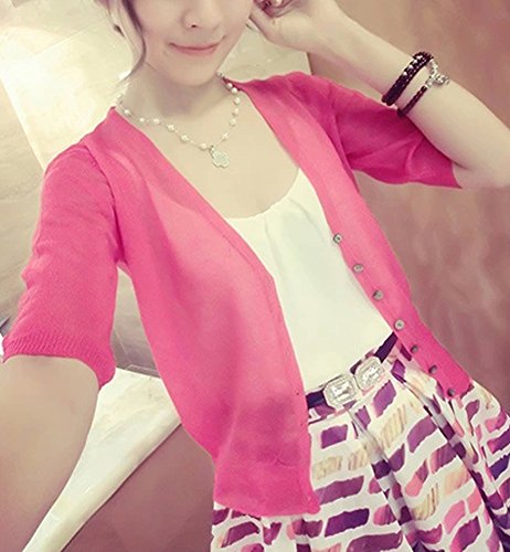 (コレール) Keral 半袖 トップス ニット 日焼け止め 薄いカーディガン_レッド