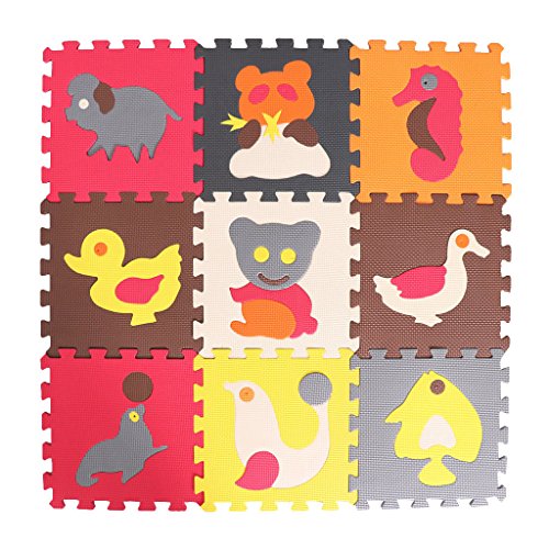 - この安全なプレイマットは、子供が色と形を学ぶのを助ける、鮮やかな画像を含む9つのインターロックパズルタイルを備えています。