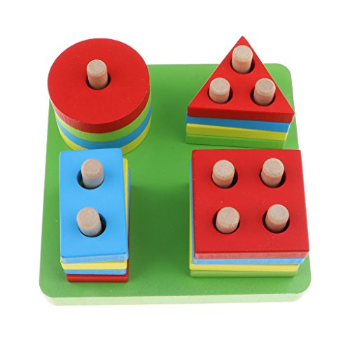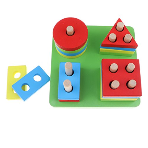 Kesoto カラフル ウッド製 早期教育 形状 ソート カラー 幾何学認知のため モンテッソーリブロック