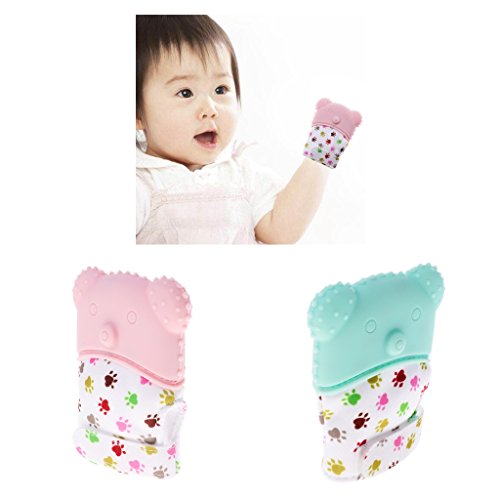 Kesoto ベビー用手袋 歯がため 歯固め 動物の型 食品グレードのシリコン製 約3.74x2.76インチ 2個セット