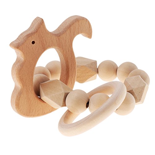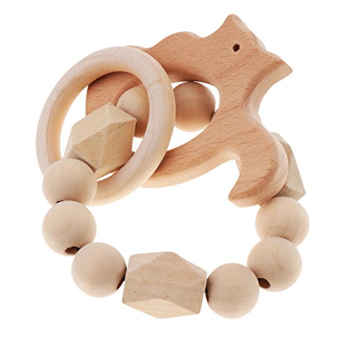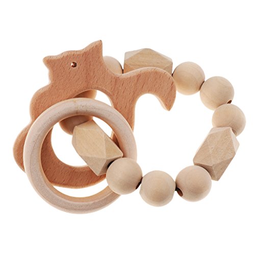 Kesoto 赤ちゃんのおもちゃ 木製リング 赤ちゃんの噛がため ブレスレット リング おもちゃ 新生児 ギフト 全5種類 - リス