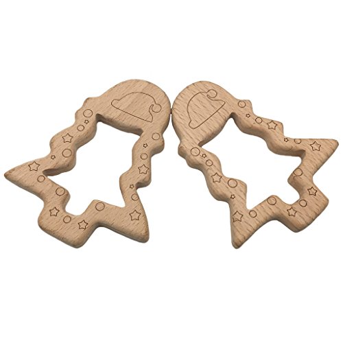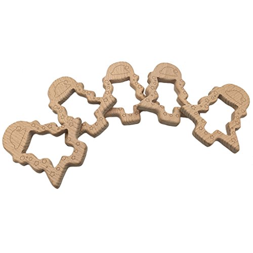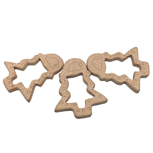 Kesoto 全6種類 歯がため 自然木製 歯のおもちゃ リング 動物の形 ウッド ベビー用 - クリスマスツリー