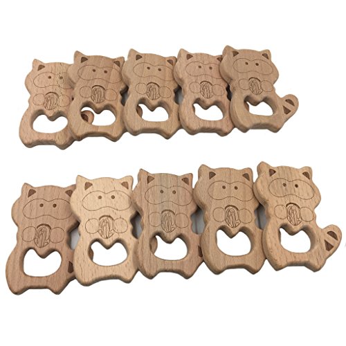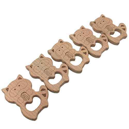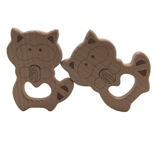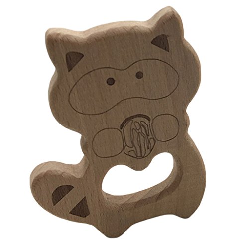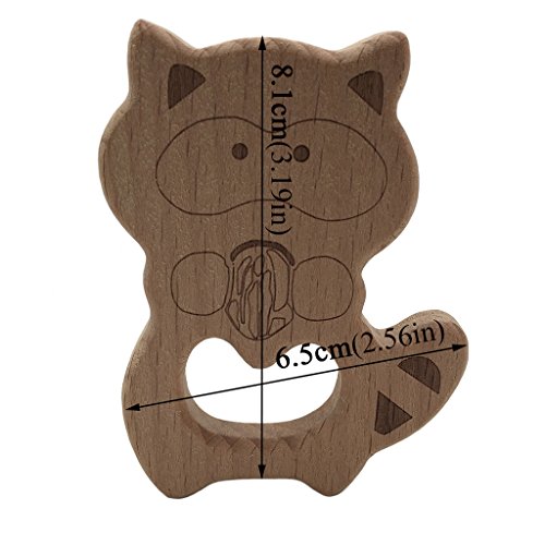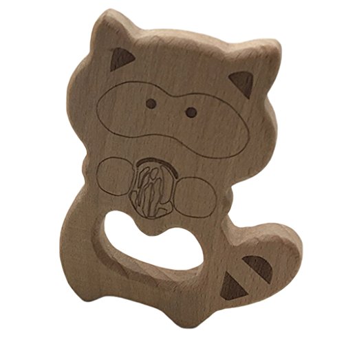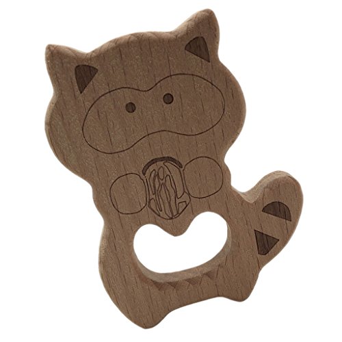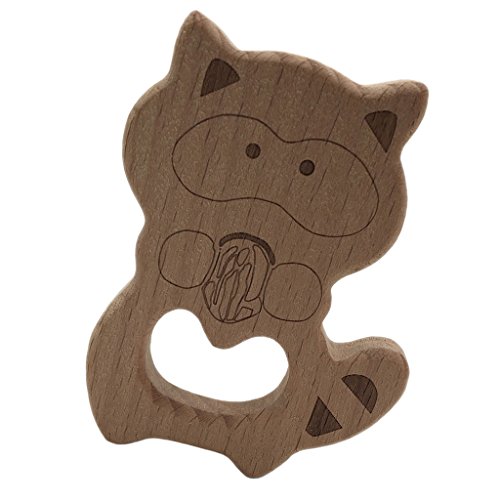 Kesoto 全6種類 歯がため 自然木製 歯のおもちゃ リング 動物の形 ウッド ベビー用 - アライグマ