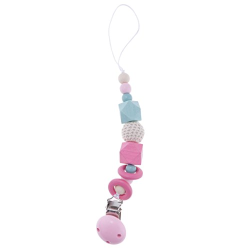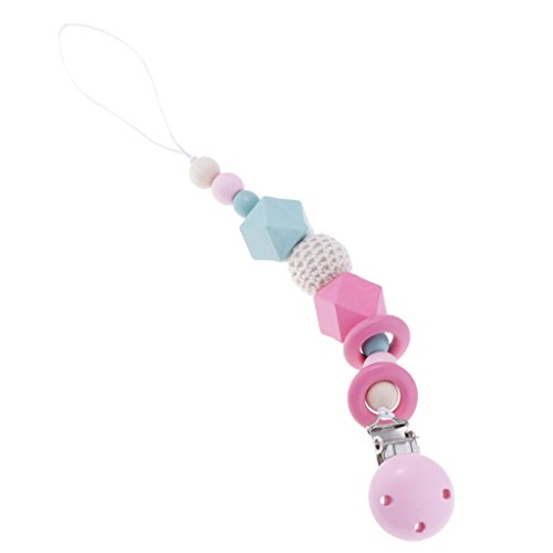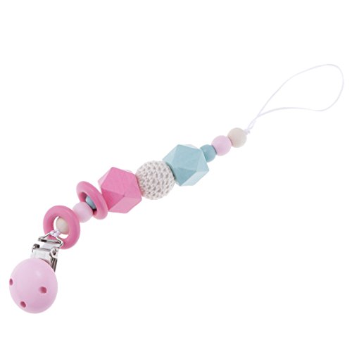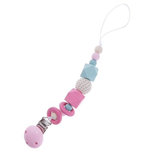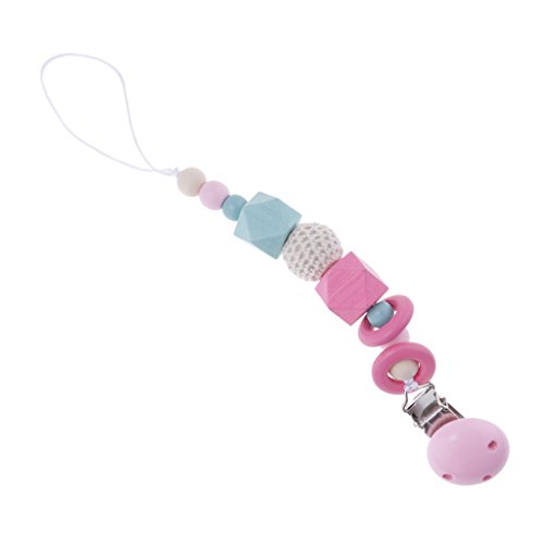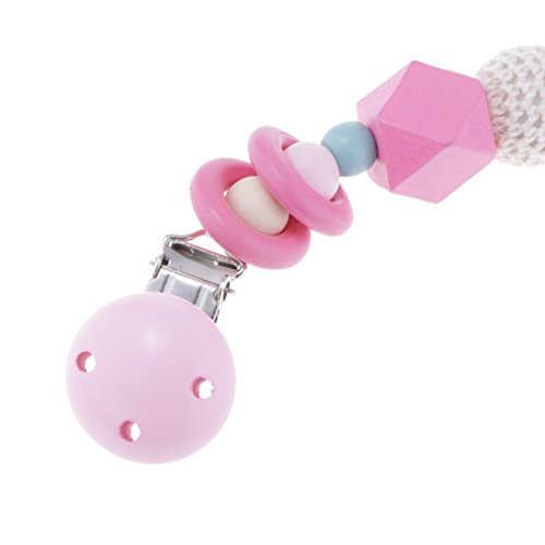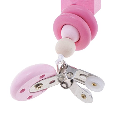 Kesoto 赤ちゃん おしゃぶりホルダー 木製 おしゃぶりクリップ おしゃぶり チェーン 全4色 - ピンク