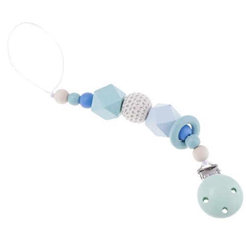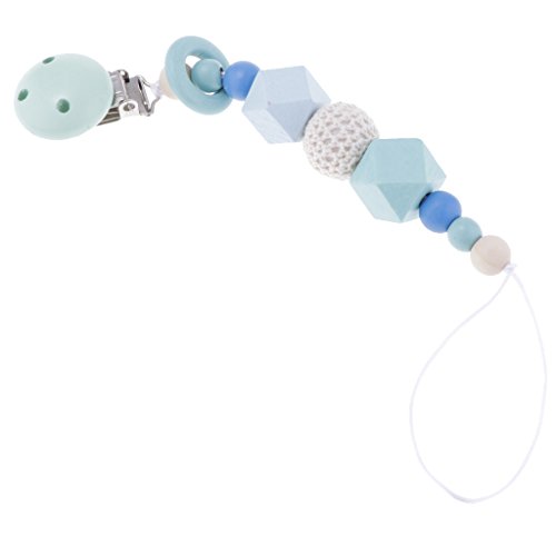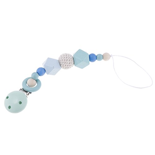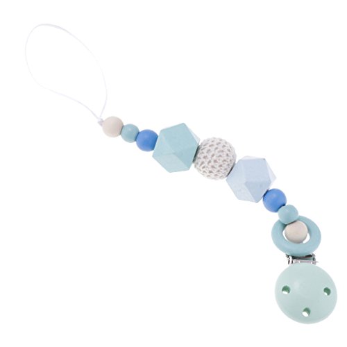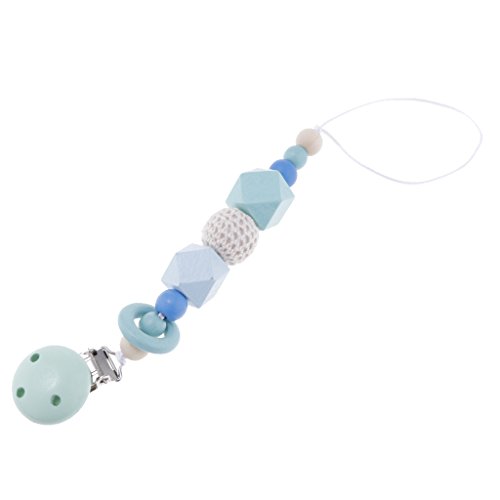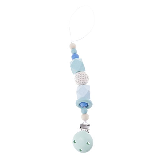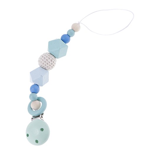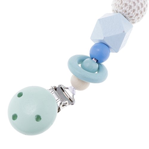 Kesoto 赤ちゃん おしゃぶりホルダー 木製 おしゃぶりクリップ おしゃぶり チェーン 全4色 - 青