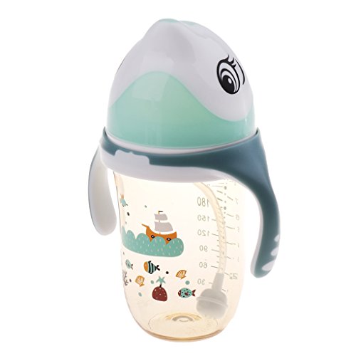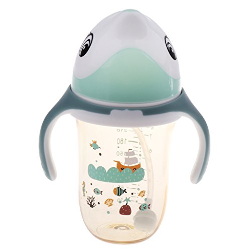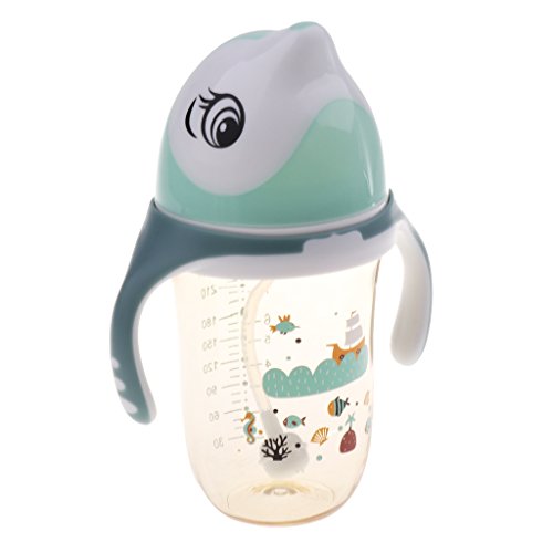 Kesoto ベビーマグ 赤ちゃん ボトル ベビーボトル 飲料カップ マグストロー 動物の形 280g ハンドル付き 全2色 - 緑