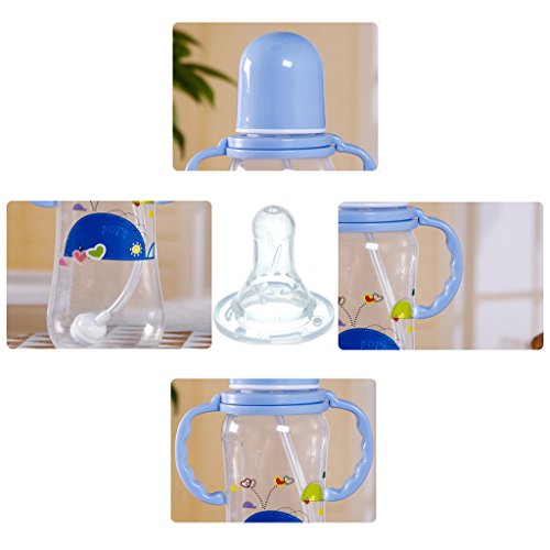 Kesoto ベビーマグ 赤ちゃん ボトル マグストロー ストロー ボトル 哺乳瓶 250g ハンドル付き 全4色 - 青