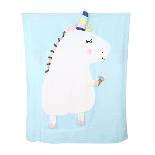 - 幼児の赤ちゃんの子供のための素敵なユニコーンソフトニットブランケット寝る寝台コットンベビーラップキルト。