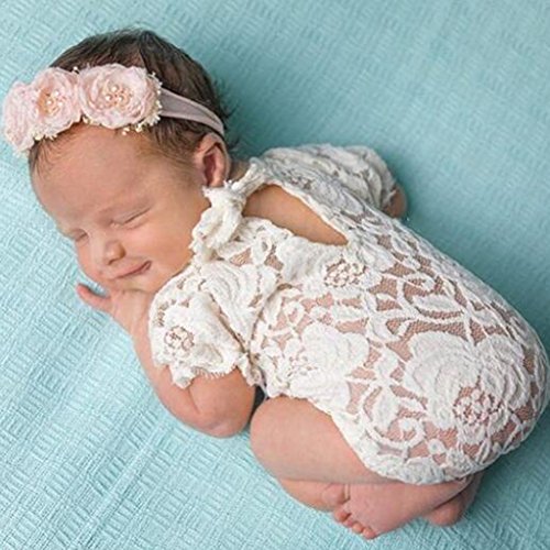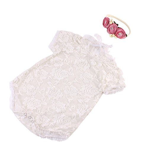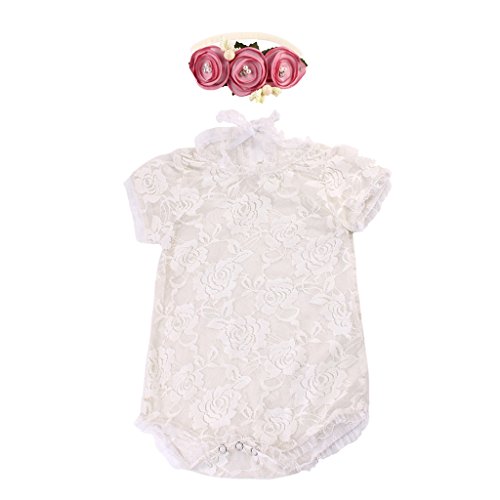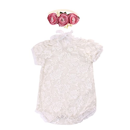 Kesoto 赤ちゃん ロンパース 幼児 レース服 ヘッドバンド付き 0-3ヶ月 柔らかくて 快適