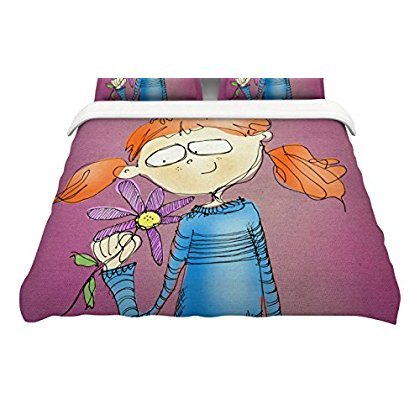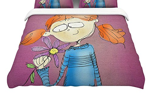 KESS InHouse CP1030ACD03 Carina Povarchik "Cute Girl with An Owl Pet" King Cotton Duvet Cover, 104" x 88" [並行輸入品]