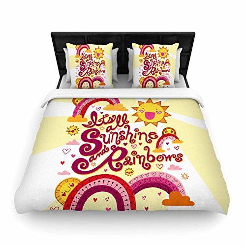 KESS InHouse Jane Smith "It's All Sunshine & Rainbows" Yellow Kids Twin Woven Duvet Cover, 68 by 88-Inch, 68" X 88"" [並行輸入品]