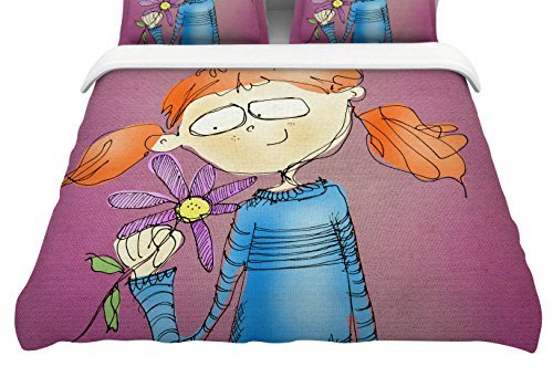 KESS InHouse Carina Povarchik "Cute Girl With An Owl Pet" Magenta Kids Featherweight Duvet Cover, 68" x 86" [並行輸入品]