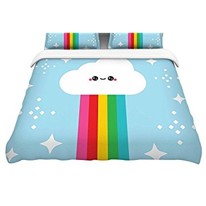 KESS InHouse KESS Original "Mr. Rainbow" Multicolor Kids Featherweight Duvet Cover, 68" x 86" [並行輸入品]