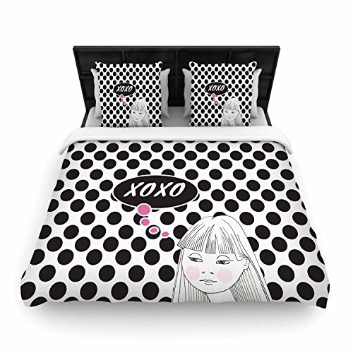 KESS InHouse Zara Martina Mansen "Xoxo Pop Art Polka Dot Girl" black White Twin Woven Duvet Cover, 68 by 88-Inch, 68" X 88"" [並行輸入品]