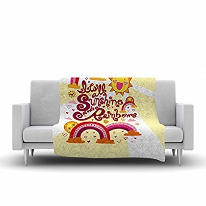 KESS InHouse Jane Smith "It's All Sunshine & Rainbows" Yellow Kids Fleece Throw Blanket, 60 by 50-Inch, 60" X 50"" [並行輸入品]