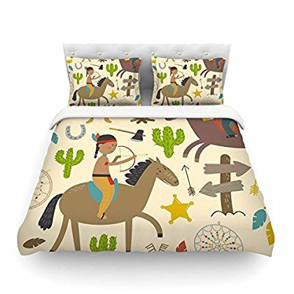 KESS InHouse Petit Griffin "Tipi" Brown Kids Featherweight Duvet Cover, 68" x 86" [並行輸入品]