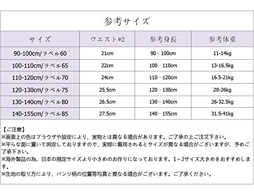 子供用パンツが登場します。 吸水性や保湿性が優れているので、デリケートなお子様の肌にも優しいです。 男の子が喜ぶ動物柄と車柄のお得な5枚セット!便利なカラー違うの5枚なので、その日の気分によって選べるのがうれしいポイント。 サイズも豊富にご用意しておりますので、お兄弟や友達同士でお揃いにコーディネートしてもおすすめです。 ほかのデザインの子供服を販売しておりますので、検索窓から 「Keyaka」 で検索くださいね♪ 【サイズ】 90-100cm/ラベル60: ウエスト21*2cm 参考体重11-14kg 参考身長90-100cm 100-110cm/ラベル65: ウエスト22*2cm 参考体重13-16.5kg 参考身長100-110cm 110-120cm/ラベル70: ウエスト24*2cm 参考体重16.5-21kg 参考身長110-120cm 120-130cm/ラベル75: ウエスト25.5*2cm 参考体重20-26kg 参考身長120-130cm 130-140cm/ラベル80: ウエスト26.5*2cm 参考体重26-32.5kg 参考身長130-140cm 140-155cm/ラベル85: ウエスト27.5*2cm 参考体重31.5-41kg 参考身長140-155cm 【ご注意】 ※画面上の色はブラウザや設定により、実物とは異なる場合があります。ご了承の上ご注文下さい。 ※平らな面に置いて測定しておりますので、実際に着用されるとサイズが異なる場合がございますが、予めご了承下さい。 ※海外製品の為、日本の規定サイズより小さめのお作りになっております。1~2サイズ大きめをおすすめします。 ※生地の取り方により、パンツ柄の位置等写真と異なる場合がございます。ご了承ください。