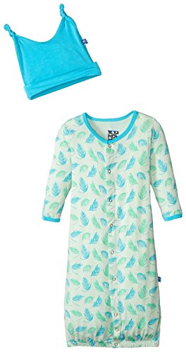 KicKeeパンツベビー男の子新生児用品一式ガウンコンバータ&ノット帽子セットprd-kplc746-pfd、Palm Frond、新生児