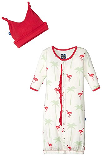 KicKeeパンツベビーガールズ印刷フリル付き新生児用品一式ガウンコンバータとノット帽子セットprd-kprlc748-nfo、自然フラミンゴ、新生児