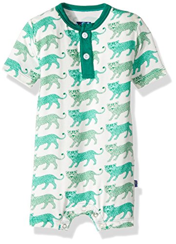 KicKeeパンツベビー男の子Print Short Sleeve Henley Romper prd-kphenr65-nld、自然Leopard、Preemie