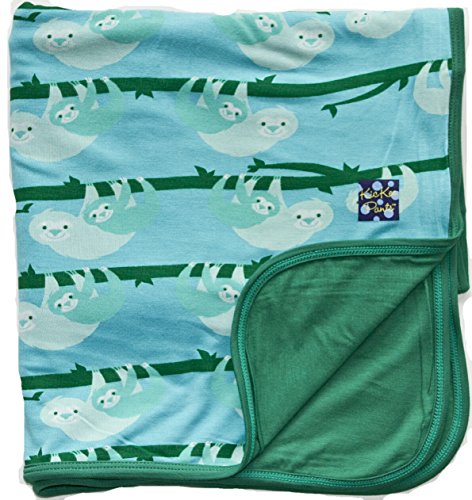 KicKee Pants印刷ベビーカーブランケット、紙吹雪Sloth with Shady Gladeトリム