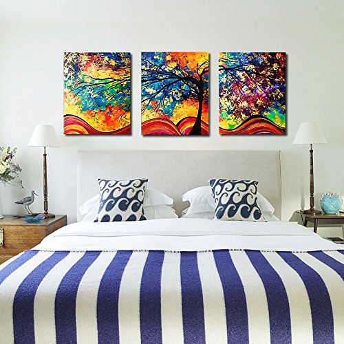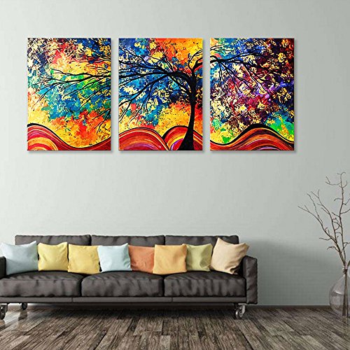 Kicode カラフルな裕福 3枚セット 油絵 ツリーの装飾 なしフレーム ホームリビング アートピクチャー