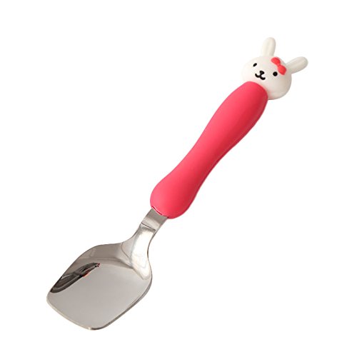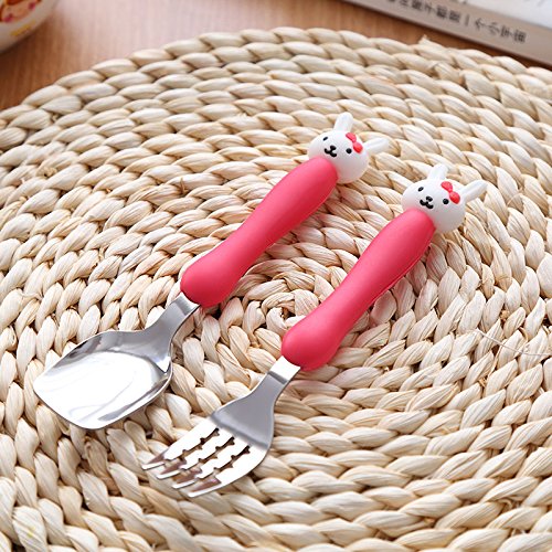 - フォークとスプーンの特徴カラフルな漫画の動物は、食事で赤ちゃんを幸せにする子どもたちに定期的な調理器具への移行を支援するために処理します