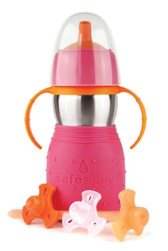 • Kid Basix Safe Sippy Cup 2, The Stainless Steel 2-in-1 Sippy Cup and Straw Bottle, Pink, 11oz