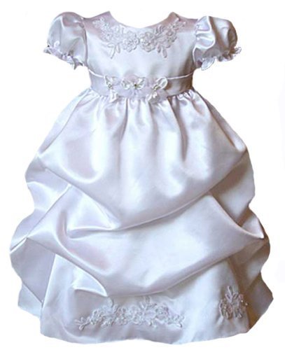 美しい女の子ホワイト洗礼特別機会のためのフォーマルドレスサテンパフ層スカートでできています。