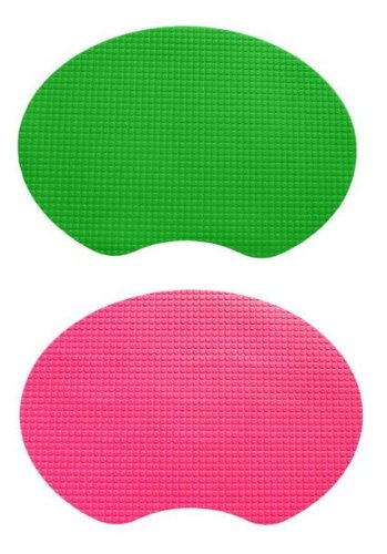 The Kid Kusion Gummi Play Mats Provide a Clean, Safe Eating Surface for Babies and Toddlers. Use the "Knobby" side to help little ones trap foods to develop the important "Pincher" reflex. Flip the Gummi Mat Over and use the Nonslip placemat to keep dishes from Sliding. It's the Perfect Placemat when dining Out! Available in a Handy 2 Pack of one of each Pink and Green.