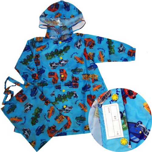 KidsForet キッズフォーレ 働く車レインコート&収納バッグ ブルー S=85-95cm