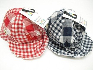Kids Foret 垂れ付チェックキャップ 日よけの付いたかわいいチェックCAPです とっても柔らかなガーゼ素材なので安心 これならお出かけも楽しくなっちゃう ※脱落防止のゴムも付きます。カラー:レッド・ネイビーサイズ:48センチ品質:綿 100%