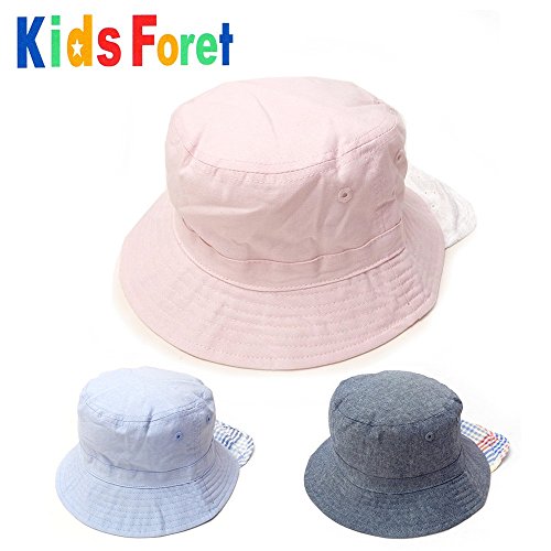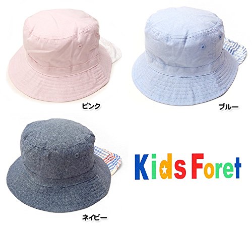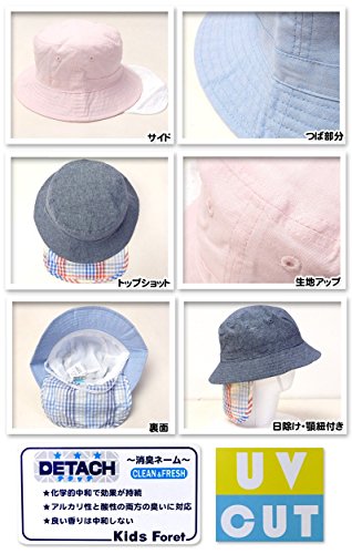 (ピンク/48cm)子供 帽子 クロッシェ ハット 女の子 男の子 Kids Foret キッズフォーレ 日除け付き 顎紐 UVカット 消臭ネーム ダンガリー 女児 男児 ベビー キッズ