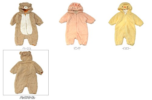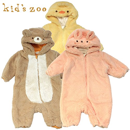 kids zoo(キッズズー)モケット刺繍入り動物オール 80 ピンク